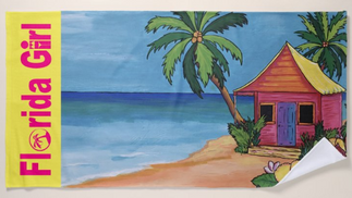 From the originaI House on a Beach painting, transformed into a unique beach towel with Florida Girl logo. Huge towel is 35x70" Perfect for those beach getaways or relaxing pool side!
