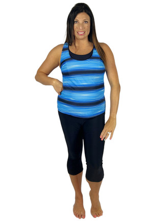Yonique 3 Piece Swimsuit w/ Tankini Top, Sports Bra, & Swim Capris.